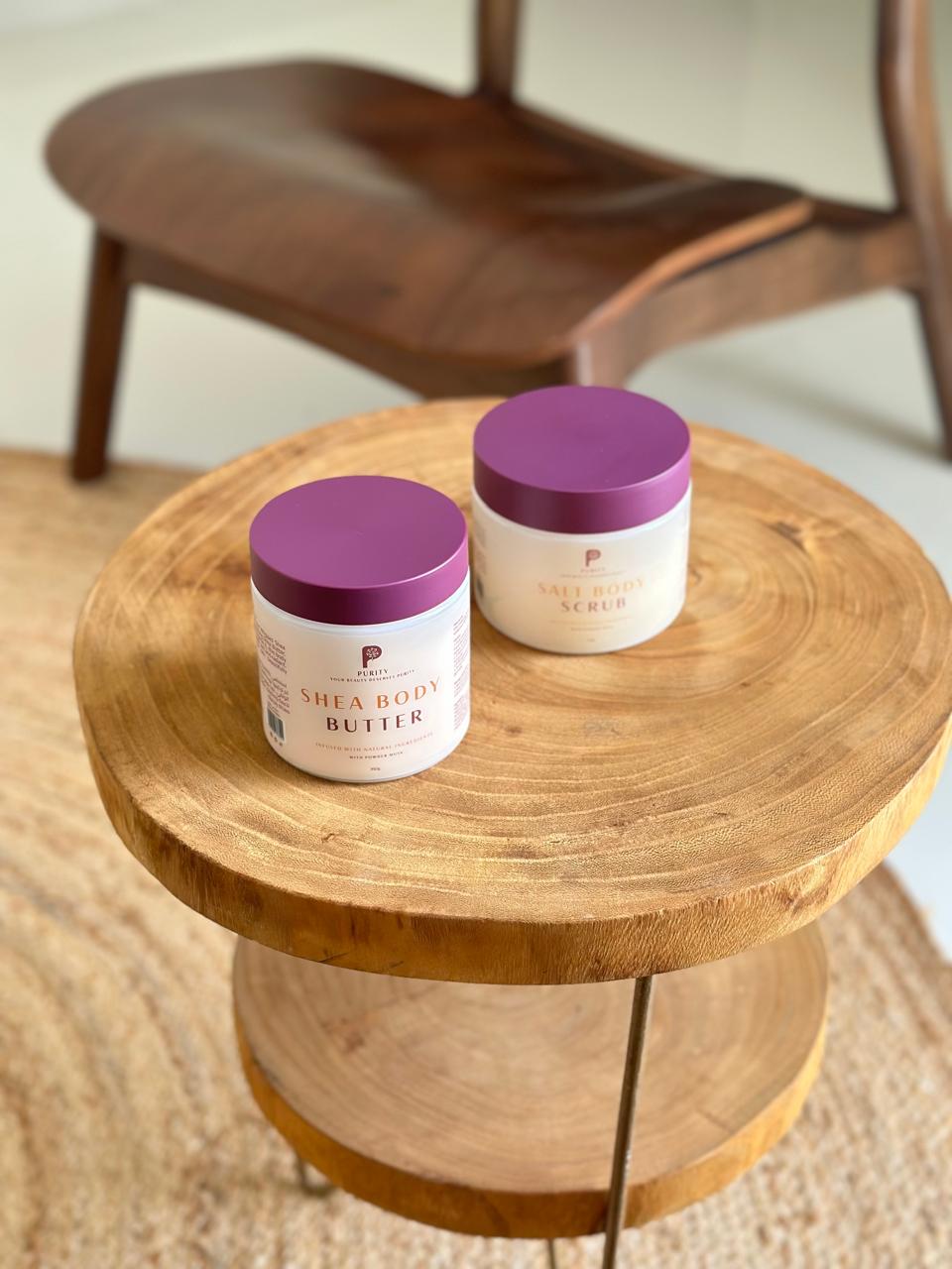 احصلي على مرطب ومقشر مقدم من بيوريتي ،مزيج مثالي من مقشر الجسم الملحي و زبدة الشيا لترطيب الجسم يمنح بشرتك نعومة وترطيبًا لا مثيل لهما.